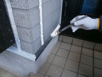 コーキング撤去中