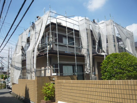 HOME > 施工例:ガイナ塗装工事 (作業工程写真付き) > 藤井寺市野中 K様邸 屋根・外壁ガイナ塗装工事施工例